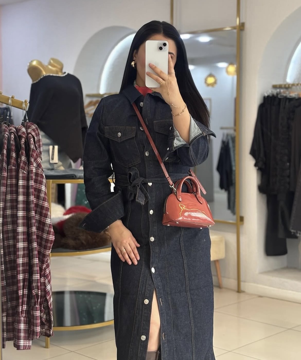 Kuşaklı denim gömlek elbise