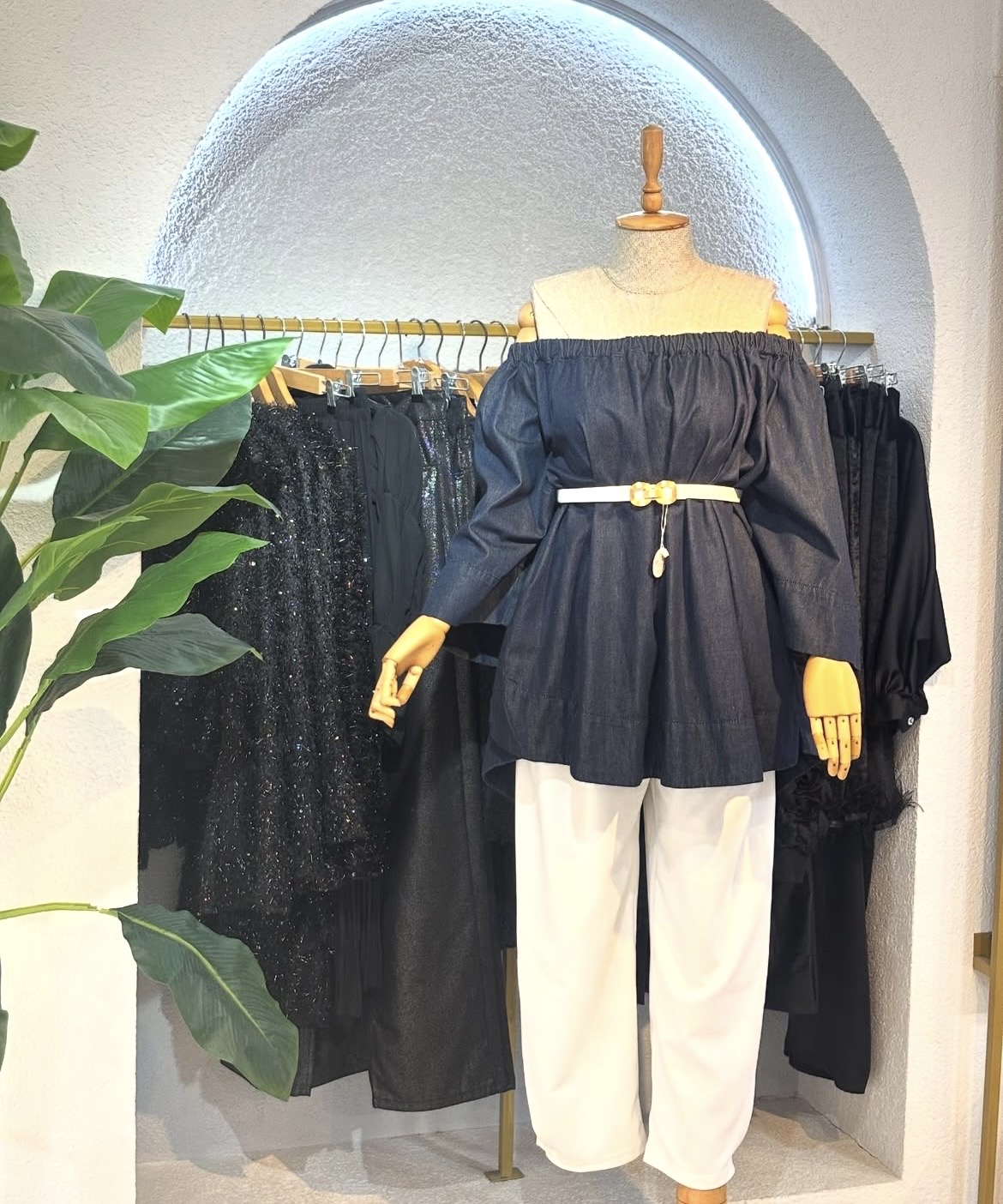 Madonna yaka (kayık yaka)kot bluz